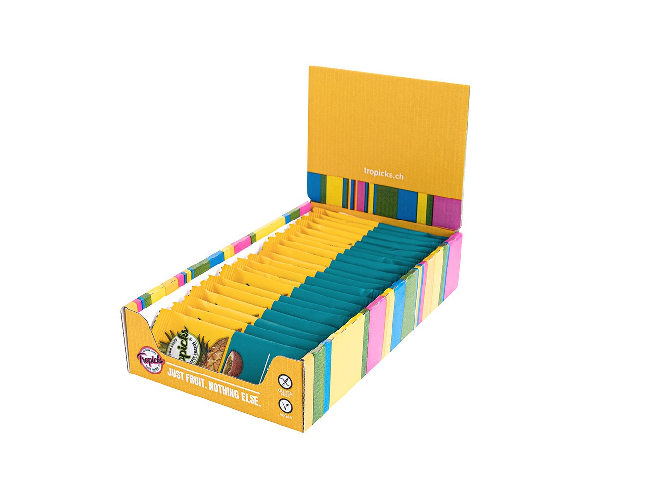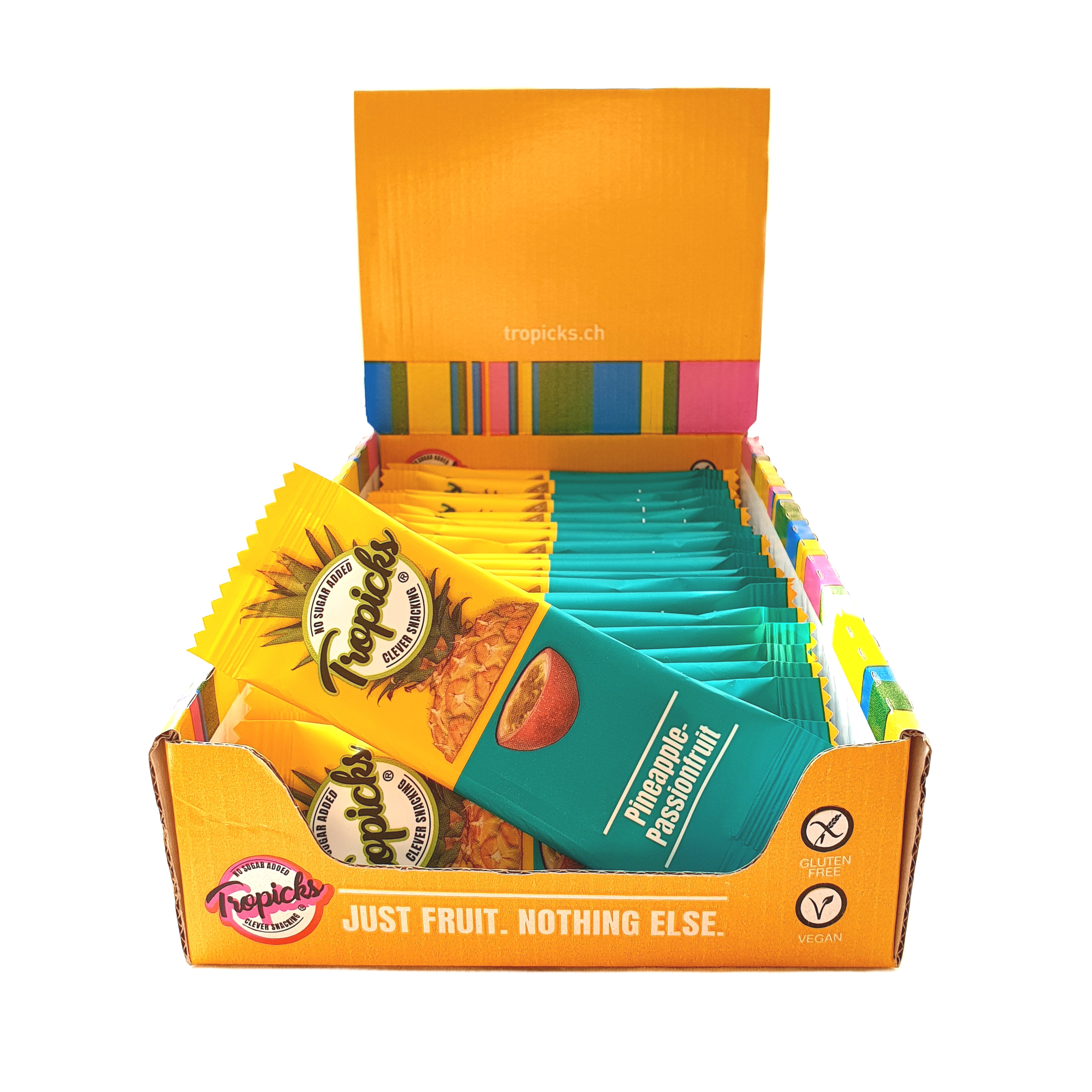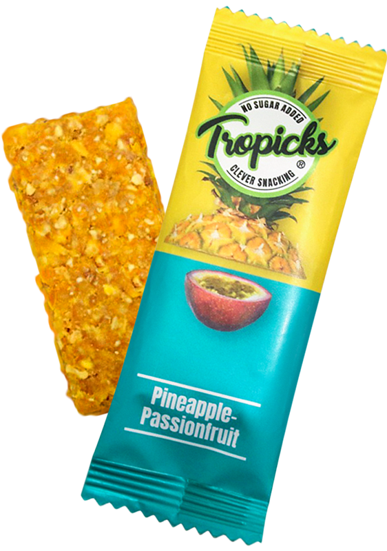 TROPICKS žāvētu ananāsu un pasifloras batoniņš. Veselīga un sātīga uzkoda. Efektīvs enerģijas lādiņš bez pievienota cukura. Lieliski piemērots gan bērniem, gan aktīviem cilvēkiem. Piemērots veģetāriešiem un vegāniem. Daudz vitamīnu, minerālvielu un šķiedrvielu. Pagatavots no 100 proc. žāvētiem augļiem. 20 g ir 200 g svaigu augļu enerģētiskā vērtība. Iepakojums 20 g.