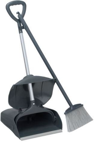 Liekšķere ar vāku un slotiņu. Uz grīdas novietojama, plastmasas. Ar garu kātu. Pelēkā krāsā.