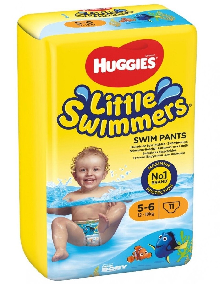 HUGGIES Little Swimmers ir īpašas autiņbiksītes ar klipšiem, kas paredzētas peldēšanai. Baseinā, ūdens atrakciju parkā vai pludmalē – šīs autiņbiksītes būs neaizstājamas, jo droši pasargās no lieliem un maziem pārsteigumiem. Šīs autiņbiksītes neizmirkst un neizlaiž ūdeni, tās ir elastīgas, ērtas un nodrošina kustību brīvību gan ūdenī, gan uz sauszemes. Paredzētas bērniem: 12-18 kg.