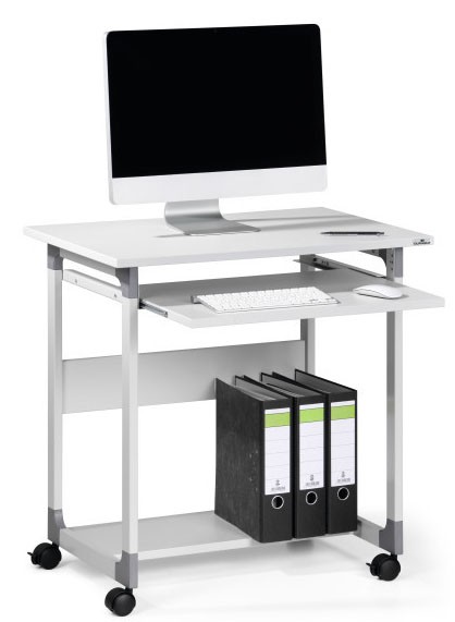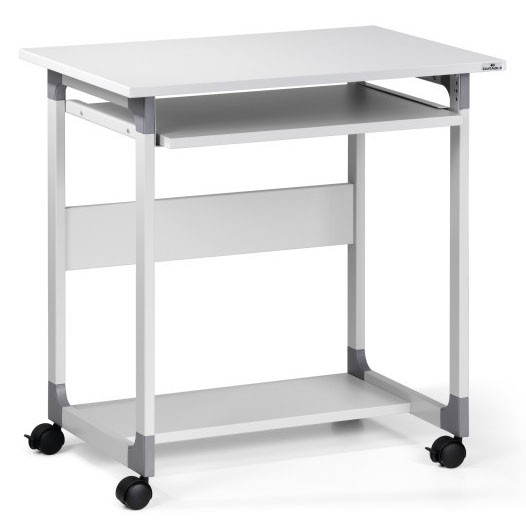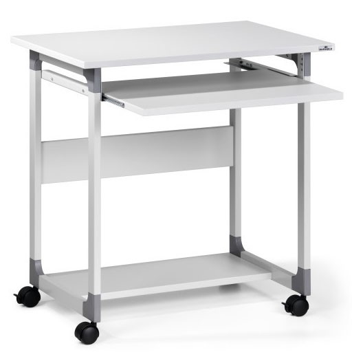 Mobils datorgalds DURABLE 75 FH. Galds ar diviem plauktiem un izvelkamu tastatūras plauktu. Tastatūras plaukta augstums regulējams starp 550-630 mm, lai nodrošinātu ērtāku darba pozīciju. Pelēkā krāsā. Izmēri: 770 x 750 x 534 mm.