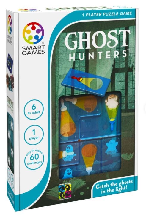 Izmēģini šaušalīgi aizraujošo galvaslaužu spēli SMART GAMES Ghost Hunters (Vaiduoklių medžiotojai). Noķer spokus! Vai esi kādreiz domājis, ko spoki dara pamestās muižās? Grab prožektorus un dodies spoku medībās. Saliec sešas detaļas tā, lai visi prožektori vienlaicīgi apgaismotu spokus. Neļauj nevienam spokam aizbēgt! Tie ir pat 60 noslēpumaini dažādas sarežģītības uzdevumi, kuru atrisināšanai būs nepieciešama loģiskā domāšana, telpiskā uztvere un pacietība. Šausmīgi labs laiks garantēts! Katram uzdevumam ir tikai viens risinājums. Bukleta beigās ir sniegtas uzdevumu atbildes. Spēle ērti glabājas kastītē. Ieteicams bērniem no 6 gadu vecuma. Brīdinājums! Nav piemērots bērniem, kas jaunāki par trim gadiem. Sīkas detaļas, aizrīšanās risks. Lietot pieaugušo uzraudzībā. Spēles ilgums 30 minūtes. Var spēlēt viens bērns.