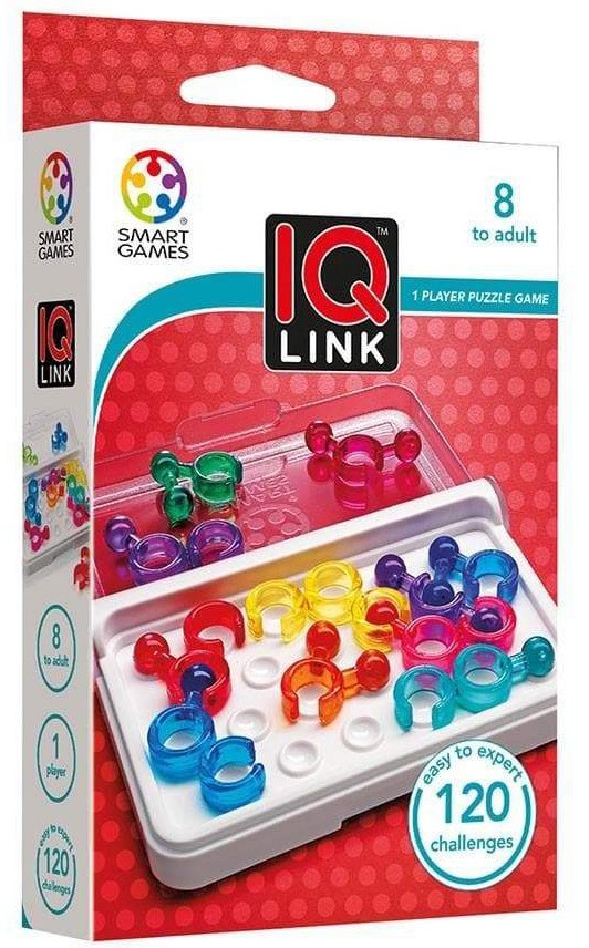 Vai redzēji šo izaicinājumu? Galda spēle SMART GAMES IQ Link ir paredzēta tiem, kuri sapņo par spēcīgu pretinieku, kas liek neizmigt naktīs, meklējot pareizo atbildi. Tiem, kuri vēlas un kuriem ir pacietība mēģināt atkal un atkal. Tiem, kuri vēlas uzvarēt, bet nebaidās zaudēt. Izvēlieties vienu no 120 uzdevumiem bukletā. Salieciet detaļas, kā norādīts uzdevumā. Satalpiniet spēles laukumā atlikušās detaļas. Vienas detaļas gredzens un otras detaļas bumbiņa var atrasties vienā vietā. Dažos gadījumos var palikt viena tukša vieta. Uzdevumu risinājumi ir sniegti bukleta beigās. Ieteicams bērniem no 8 gadu vecuma. Brīdinājums! Nav piemērots bērniem, kas jaunāki par trim gadiem. Sīkas detaļas, aizrīšanās risks. Lietot pieaugušo uzraudzībā. Spēles ilgums 30 minūtes. Var spēlēt viens bērns.