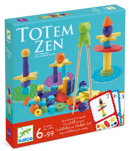 Galda spēle DJECO “Totem zen” palīdzēs novērtēt tavu pirkstu veiklību. Šī ir jautra un krāsaina spēle, kas ieinteresēs ikvienu! Spēlētājiem ir jāsasteidz un pirmajiem jāsavāc atbilstošās pērlītes, izmantojot… irbulīšus! Pēc tam, sekojot uzdevumam kartītē, viņiem uzmanīgi jāuzceļ savs tornis! Tas nebūt nav vienkārši un izraisa daudz smieklu. Spēles detaļas ir izgatavotas no koka. Ieteicams bērniem no 6 gadu vecuma. Brīdinājums! Nav piemērots bērniem, kas jaunāki par trim gadiem. Sīkas detaļas, aizrīšanās risks. Lietot pieaugušo uzraudzībā.