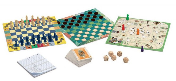 Šis ir lielisks DJECO komplekts, kurā atradīsi daudz dažādu populāru galda spēļu. Vari izklaidēties ar savu ģimeni un draugiem, lai kur tu būtu – tavas mīļākās spēles vienmēr ir blakus, kompakti iepakotas vienā kastē. Šeit atradīsi ludo (cirku), zosu spēli, čūskas un kāpnes, šahu, dambreti, kārtis un citas spēles. Iepakots skaistā kastē, tā ir lieliska dāvana ģimenei! Ieteicams bērniem no 6 gadu vecuma. Brīdinājums! Nav piemērots bērniem, kas jaunāki par trim gadiem. Sīkas detaļas, aizrīšanās risks. Lietot pieaugušo uzraudzībā. Spēlē ir 3 abpusēji spēļu laukumi, 40 dambretes kauliņi, 32 šaha figūras, 5 kauliņi, 1 punktu grāmatiņa, 54 kāršu kava, 16 koka spēles figūriņas.