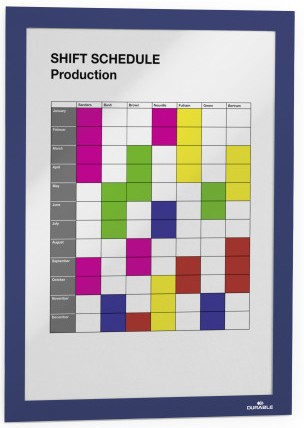 Dokumentu rāmis DURABLE DURAFRAME®, tumši zilā krāsā. A4 formāts. Piemērots gludām stikla virsmām. Ātra dokumentu ievietošana un nomaiņa caur atveramo magnētisko rāmi. Iepakojumā 2 gab.