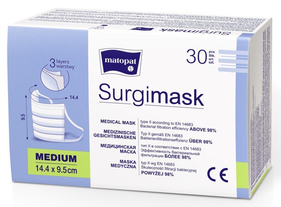 Vienreizlietojamās medicīniskās bērnu sejas maskas. Īpaši piemērotas valkāšanai bērniem un pusaudžiem – mazāks izmērs 14,4 x 9,5 cm (par 2 cm mazākas nekā parastās pieaugušo maskas). Nospiež ausis. Stiprināmas uz sejas ar unikālu elastīgu siksniņu palīdzību. Atbilst normai EN 14683, tips II, ir CE marķējums, baktēriju filtrācija (BFE) 98%. Vienreizlietojamā sejas maska paredzēta aizsardzībai pret akūtām augšējo elpceļu infekcijām un citām infekcijām, kas izplatās gaisa pilienu ceļā. Iepakojumā 30 gab.