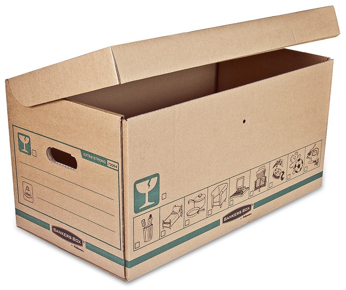 FELLOWES - īpaši izturīgas transportēšanas un arhivēšanas kastes. Iztur līdz 40 kg svaru. Izgatavotas no ļoti biezas gofrētā kartona materiāla ar trīskāršām sienām. Vāks ar caurumiem ļauj kastes noplombēt. Ārējie izmēri: 338x312x628 mm. Lielais izmērs.