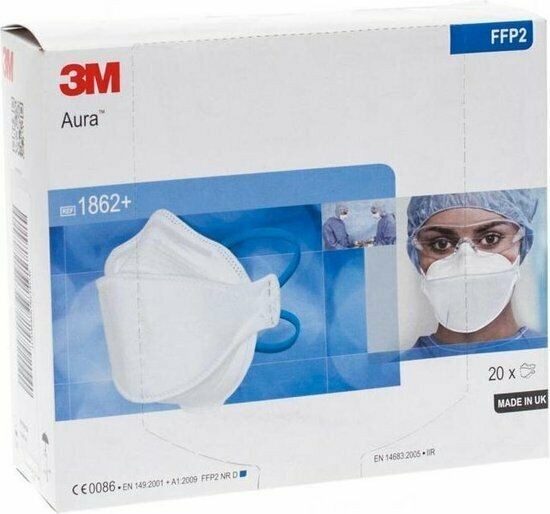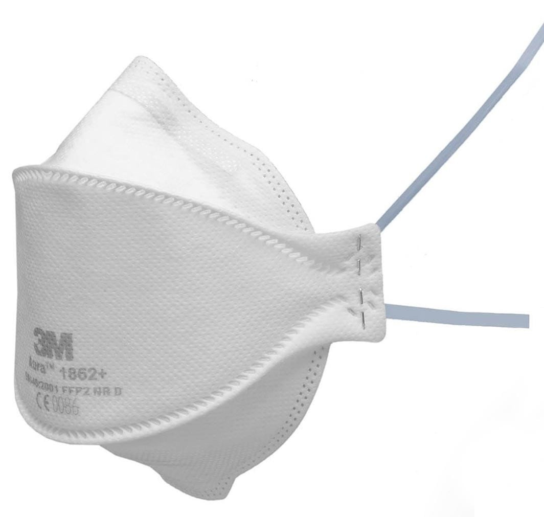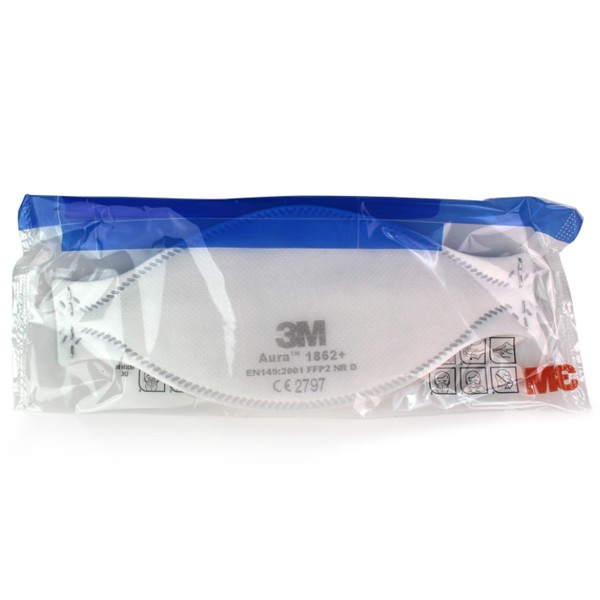 Vienreizlietojams respirators 3M AURA, FFP2, IIR, 1862+ bez vārsta, ar Cool Flow™ tehnoloģiju, kas efektīvi izvada izelpotā gaisa siltumu un nodrošina vēsāku un ērtāku valkāšanu, tādējādi samazinot briļļu aizsvīšanas risku. Unikāla dizaina, salokāms, 3 daļu respirators ar regulējamām gumijām ir piemērots dažādu formu un izmēru sejām. Respirators atbilst (120/CASE) FFP2 EN 149:2001+A1:2009 marķējumam.