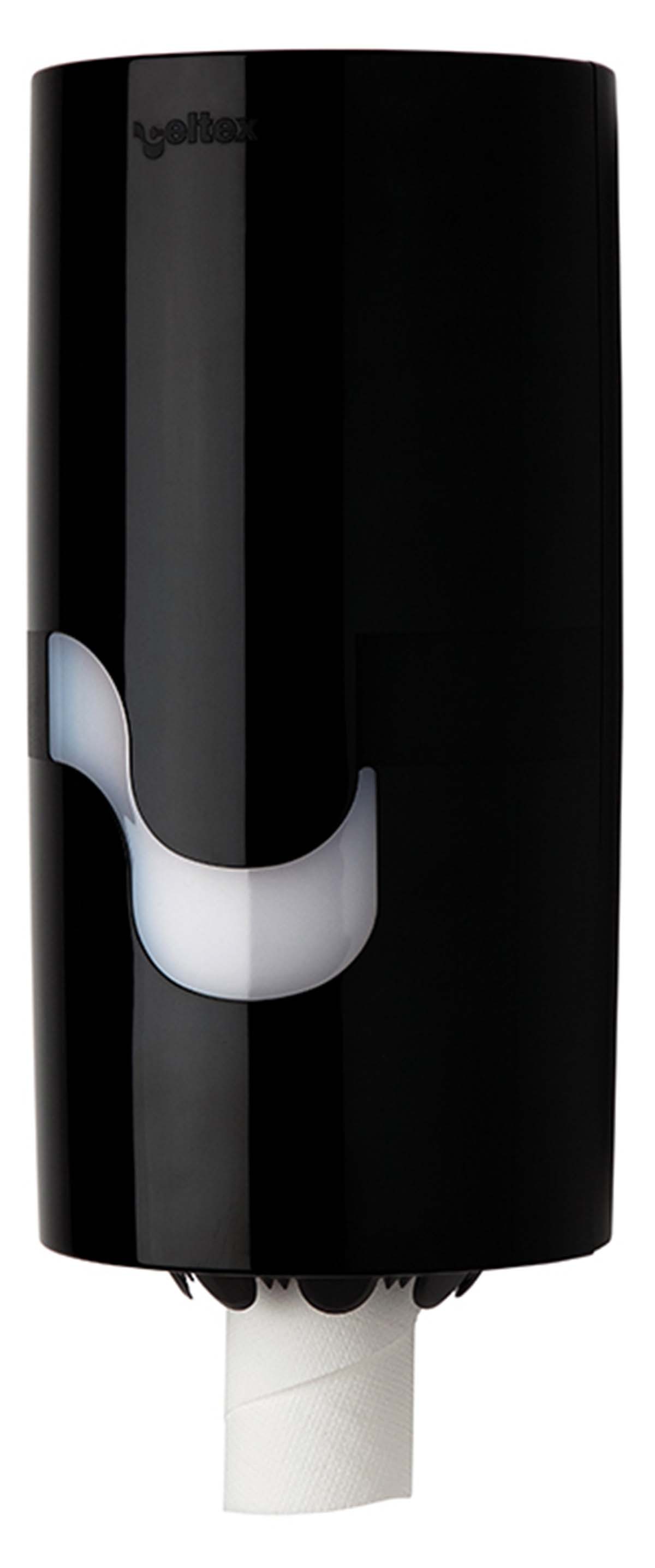 Papīra dvieļu turētājs CELTEX Mini Centrefeed Roll, 92310. Materiāls: plastmasa. Krāsa: melna. Izmēri: augstums 34,5 cm, platums 16 cm, dziļums 17 cm. Nodrošina vieglu lietošanu dozatoru lietotājiem un apkalpojošajam personālam.