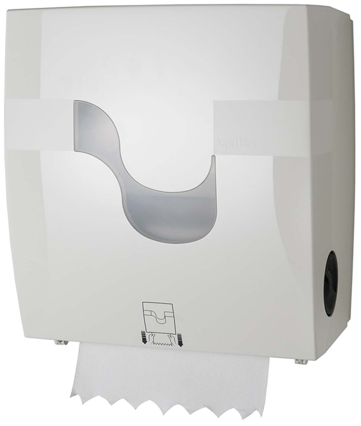 Papīra dvieļu turētājs CELTEX New Formatic Megamini, 92680. Materiāls: plastmasa. Krāsa: balta. Izmēri: augstums 35 cm, platums 31,3 cm, dziļums 22 cm. Liela ietilpība, bezkontakta sistēma un uzticama papīra padeve.