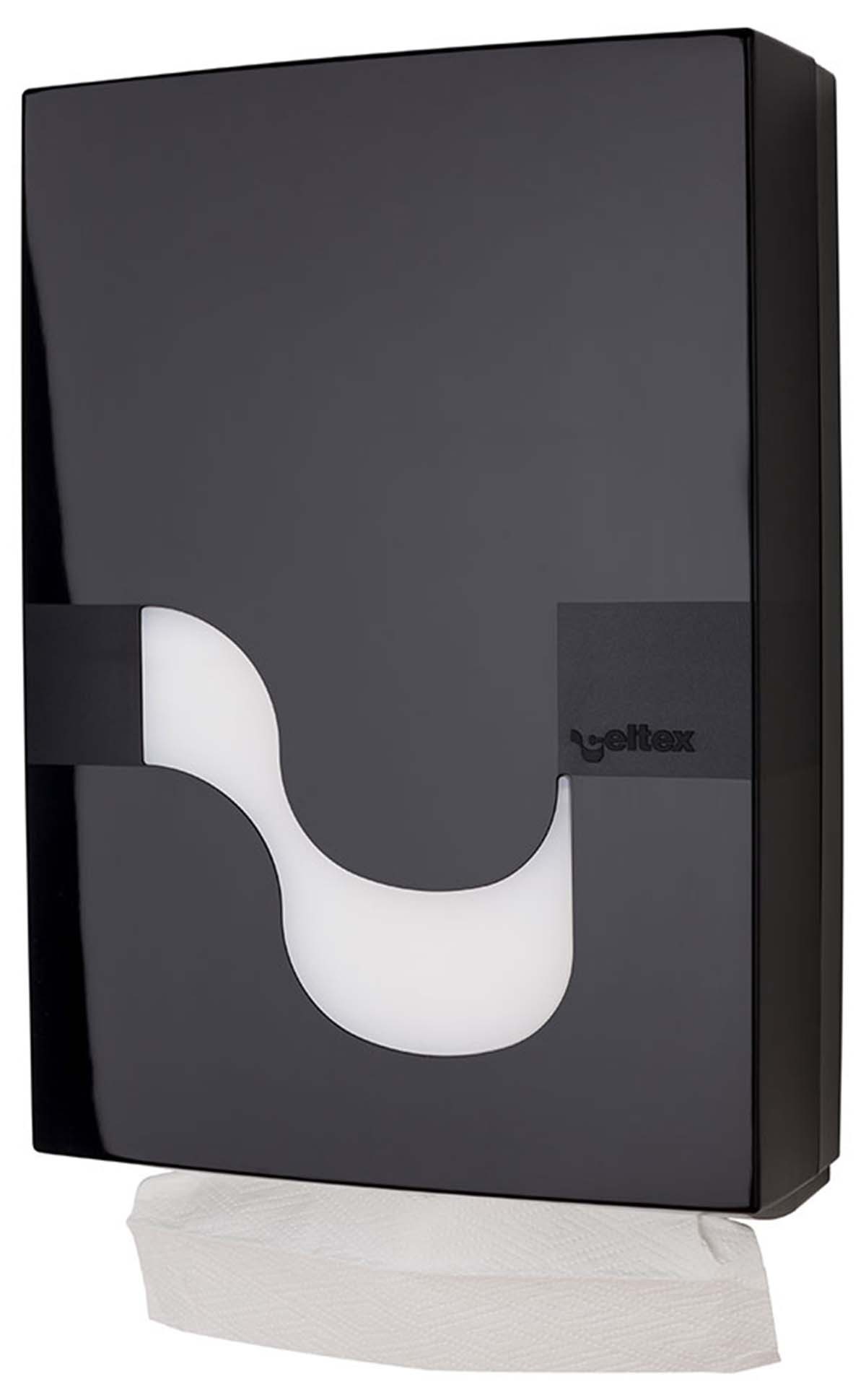 Papīra dvieļu lokšņu turētājs CELTEX M/Z/ZZ Folded Hand towel, 92110. Materiāls: plastmasa. Krāsa: melna. Izmēri: augstums 36 cm, platums 24,5 cm, dziļums 10,5 cm. Slēdzams, piemērots M, Z un ZZ locījuma dvieļiem.