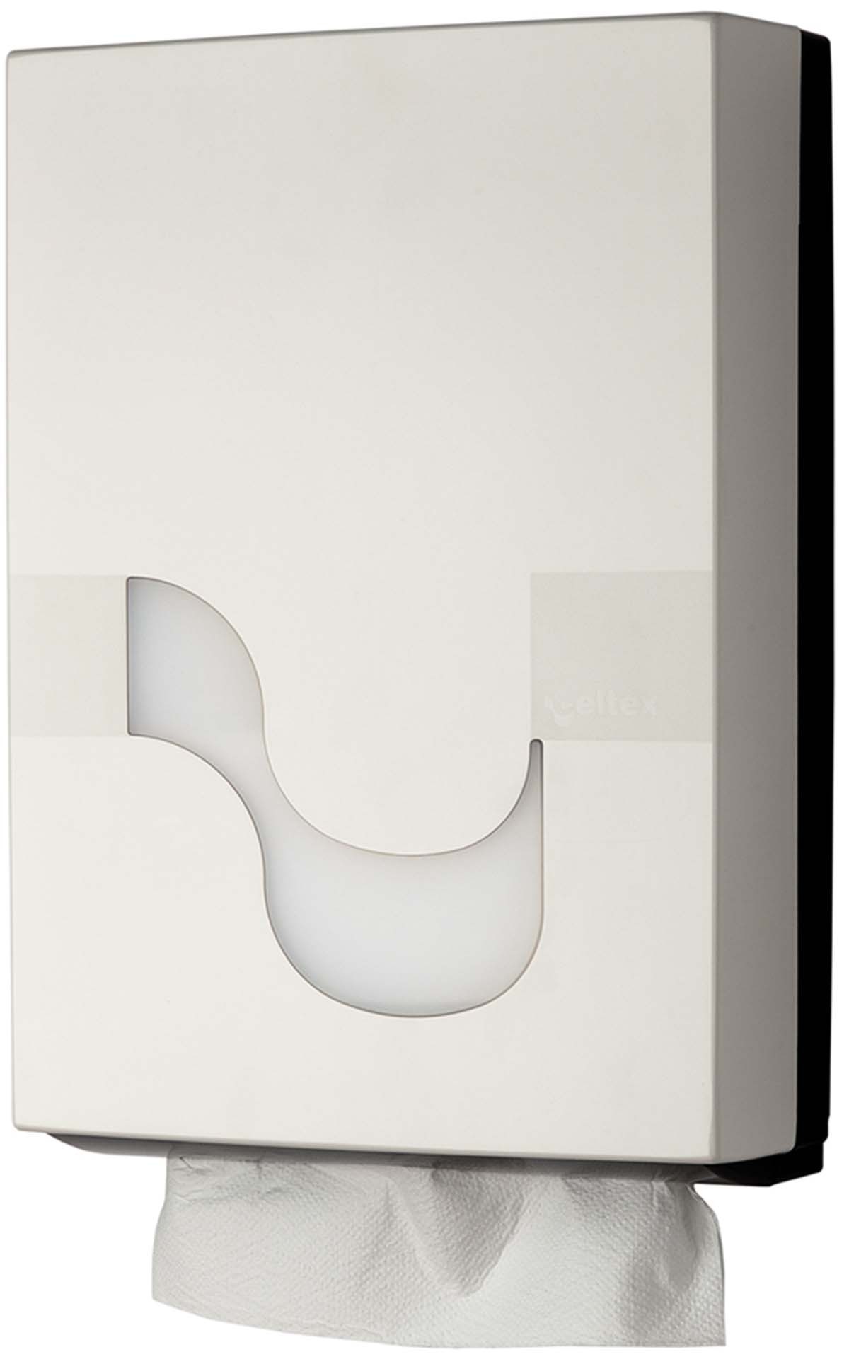 Papīra dvieļu lokšņu turētājs CELTEX M/Z/ZZ Folded Hand towel, 92130. Materiāls: plastmasa. Krāsa: balta. Izmēri: augstums 36 cm, platums 24,5 cm, dziļums 10,5 cm. Slēdzams dozators, vienkārša un ērta apkope.