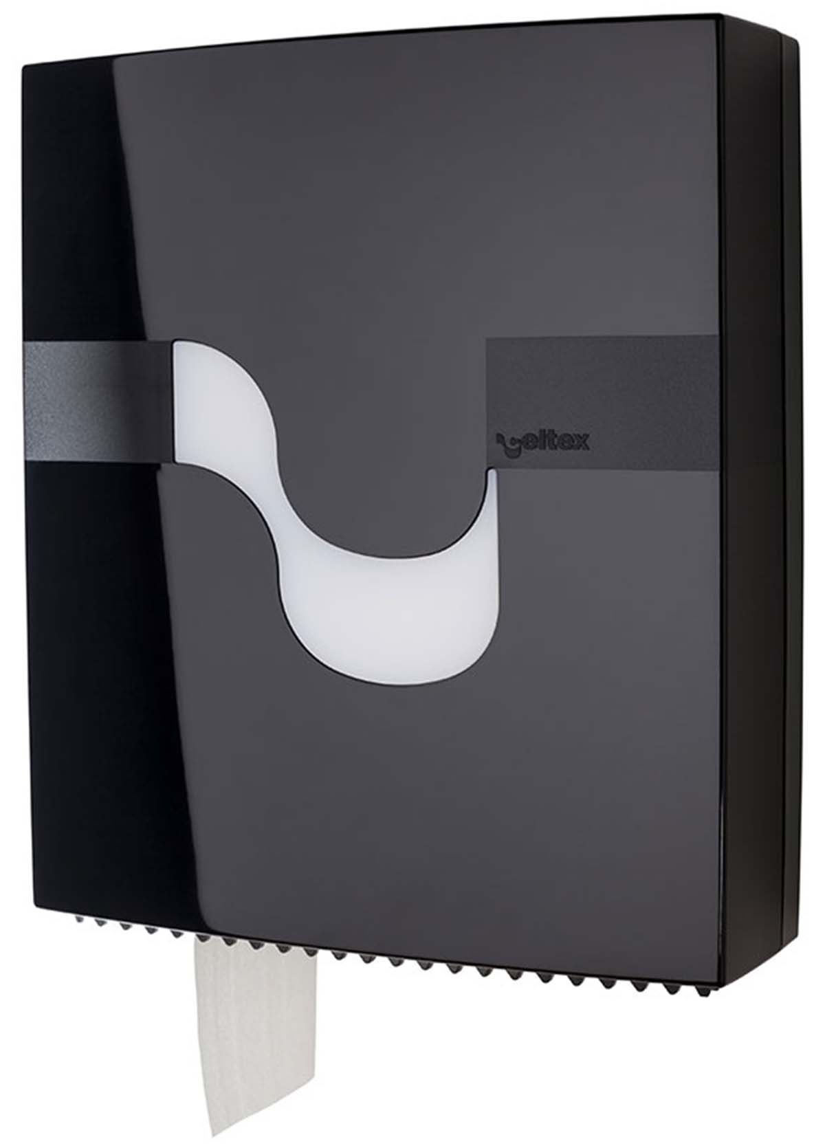 Tualetes papīra lokšņu turētājs CELTEX Folded Toilet Paper, 92200. Materiāls: plastmasa. Krāsa: melna. Izmēri: augstums 37,5 cm, platums 31,5 cm, dziļums 11,5 cm. Slēdzams, vienkāršs un ērts dozators, viegla apkope.