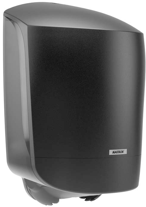 Papīra dvieļu turētājs KATRIN Inclusive Centerfeed M, 82254. Materiāls: plastmasa. Krāsa: melna. Izmēri: augstums 40,3 cm, platums 26,3 cm, dziļums 24 cm. Caurspīdīgs korpuss nodrošina vieglu lietošanu apmeklētājiem un apkopes personālam. Viegli papildināt, jo durtiņas atveras uz augšu. Turētājiem ir slēdzene, ko var izmantot ar vai bez atslēgas. Ideāla sistēma vietām, kur nepieciešama bieža roku mazgāšana un virsmu tīrīšana.