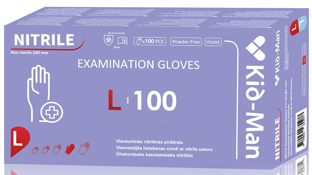 Vienreizlietojamie nitrila cimdi KID-MAN, L izmērs, 100 gab.
