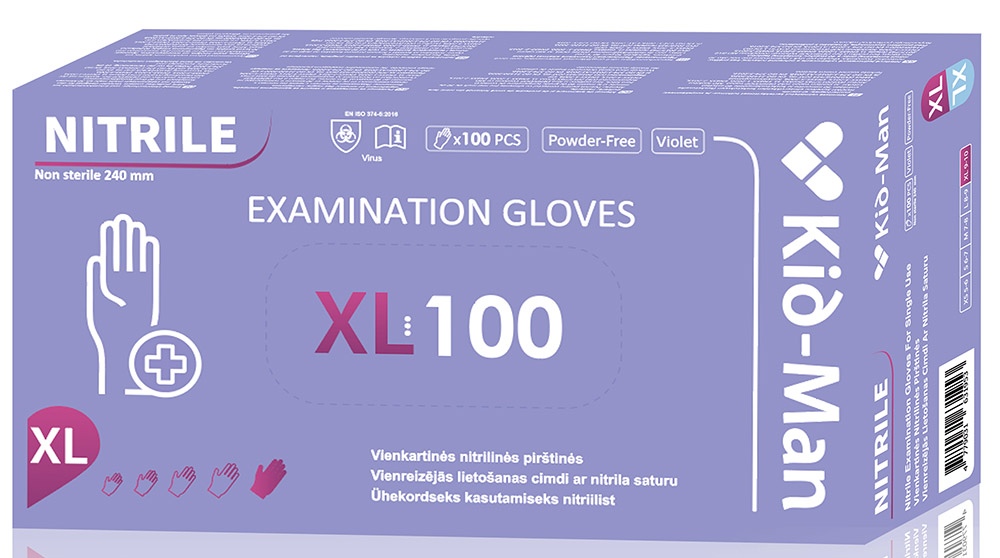 Vienreizlietojamie nitrila cimdi KID-MAN, XL izmērs, 100 gab.
