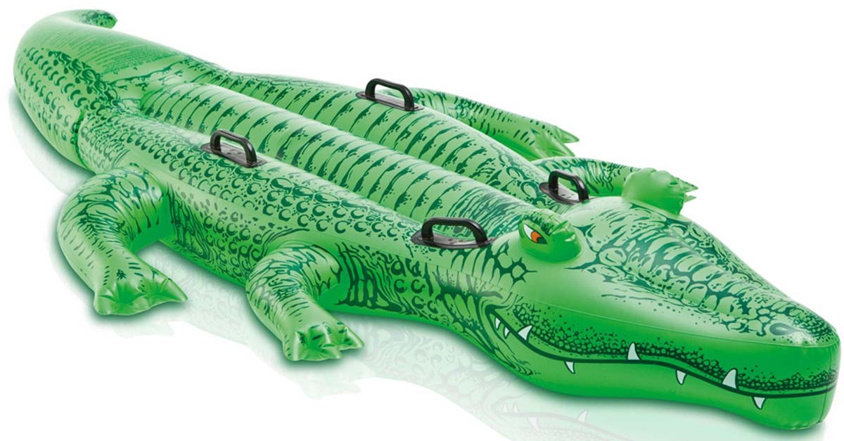 Uz šī milzīgā INTEX „Aligators“ piepūšamā plosta var satilpt visa ģimene! Ar zaļo aligatoru atpūta kļūst vēl jautrāka. Izgatavots no kvalitatīva vinila (0,3 mm). Divi ērti rokturi un divas gaisa kameras. Komplektā iekļauts remonta komplekts. Piemērots bērniem līdz 40 kg. Paredzēts rotaļām, atpūtai un peldēšanai. Ieteicams bērniem no 3 gadu vecuma. Brīdinājums! Nav piemērots bērniem, kas jaunāki par 3 gadiem. Lietot tikai bērnam piemērotā ūdens dziļumā un pieaugušo uzraudzībā. Neatstājiet bērnu ūdenī bez uzraudzības. Piepūsta izstrādājuma izmērs: 203 × 114 cm.