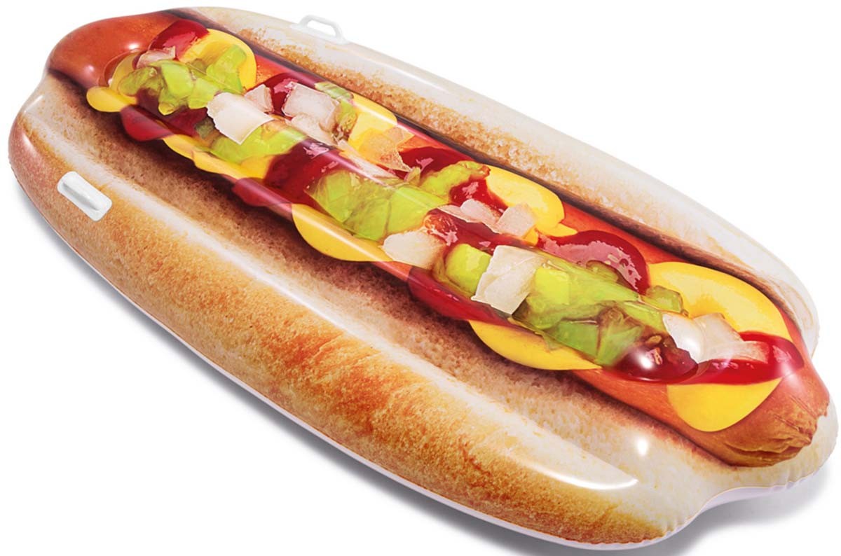 Labu noskaņojumu un jautri pavadītu laiku pie jūras, ezera vai baseina nodrošinās unikālas formas piepūšamais plosts INTEX „Hot Dog“. Tas patiešām rosina apetīti! Izgatavots no kvalitatīva vinila (0,28 mm). Divi ērti rokturi. Komplektā iekļauts remonta komplekts. Iztur līdz 80 kg. Paredzēts rotaļām, atpūtai un peldēšanai. Ieteicams bērniem no 14 gadu vecuma. Brīdinājums! Nav piemērots bērniem līdz 3 gadu vecumam. Lietot tikai bērnam piemērotā ūdens dziļumā un pieaugušo uzraudzībā. Neatstājiet bērnu ūdenī bez uzraudzības. Piepūsta izstrādājuma izmērs: 180 × 89 cm.