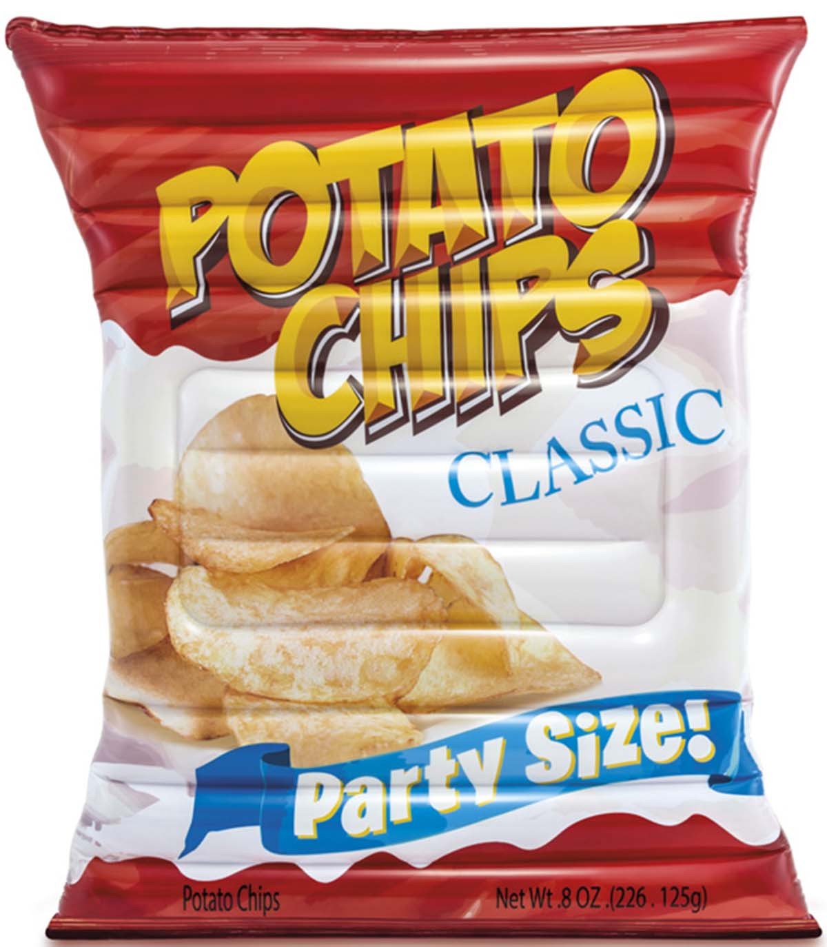 Šis rotaļīgais un gardi izskatīgais piepūšamais plosts INTEX „Potato Chips“ ļaus patīkami pavadīt laiku baseinā, pie jūras vai ezera. Ar to jūs noteikti būsiet pamanāmi! Gandrīz divguļamās gultas izmērā! Izgatavots no kvalitatīva vinila (0,3 mm). Komplektā iekļauts remonta komplekts. Paredzēts rotaļām, atpūtai un peldēšanai. Ieteicams bērniem no 14 gadu vecuma. Brīdinājums! Nav piemērots bērniem līdz 3 gadu vecumam. Lietot tikai bērnam piemērotā ūdens dziļumā un pieaugušo uzraudzībā. Neatstājiet bērnu ūdenī bez uzraudzības. Piepūsta izstrādājuma izmērs: 178 × 140 cm.