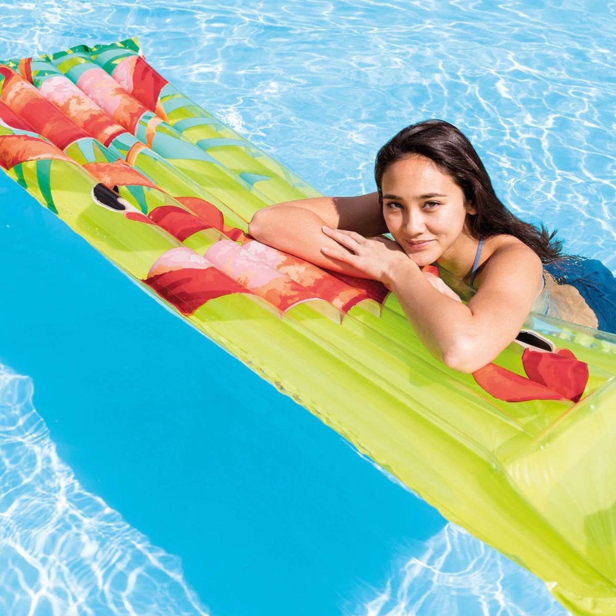 Stilīgs, vasarīgs un dzīvespriecīgs piepūšamais matracis INTEX Fashion palīdzēs jums radīt jautru svētku noskaņu! Izgatavots no augstas kvalitātes un izturīga vinila. Ar drošības vārstiem. Paredzēts spēlēm, atpūtai un peldēšanai. Ieteicams bērniem no 14 gadu vecuma. Brīdinājums! Nav piemērots bērniem līdz trīs gadu vecumam. Lietot tikai bērnam piemērotā dziļumā un pieaugušo uzraudzībā. Neatstāt bērnu ūdenī bez uzraudzības. Krāsa tiek izvēlēta nejauši. Piepūšamā matrača izmērs ir 183x69 cm.