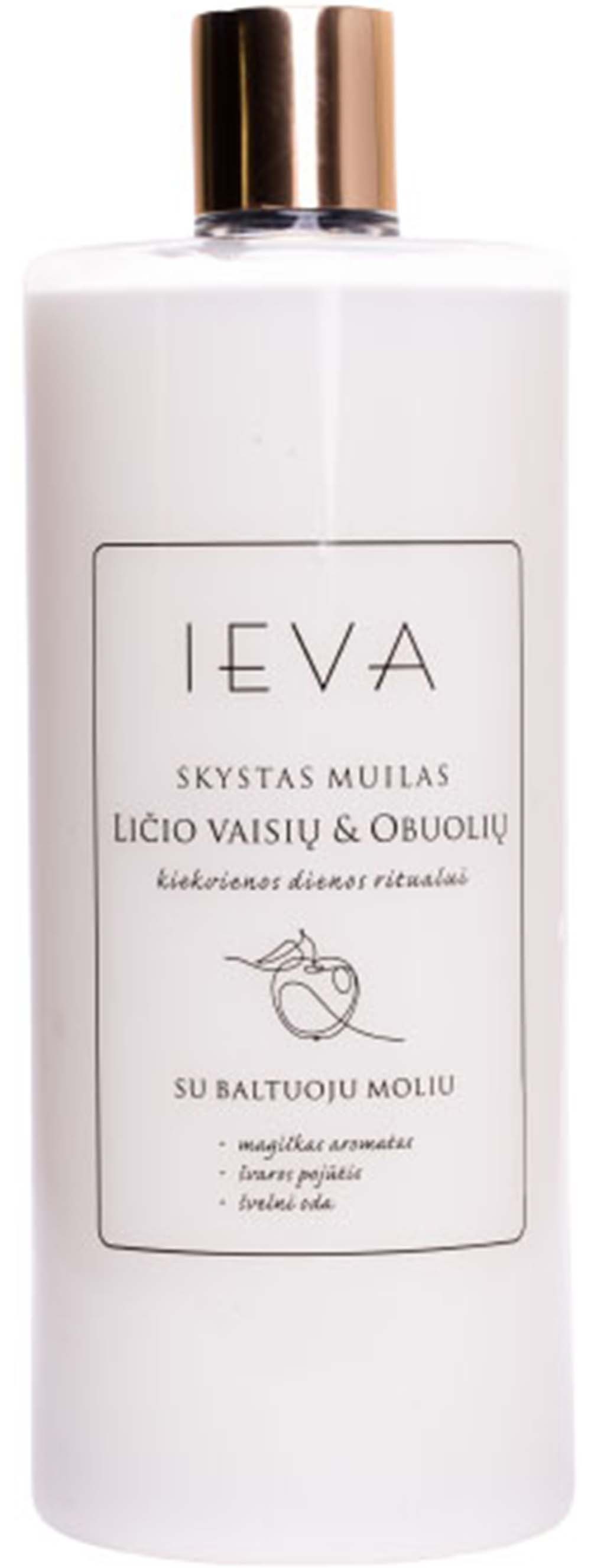 Maigas šķidrās ziepes IEVA, ličī un ābolu aromāts (1000 ml). Ar balto mālu un E vitamīnu. Efektīvi attīra un baro ādu. Tilpums: 1000 ml.
