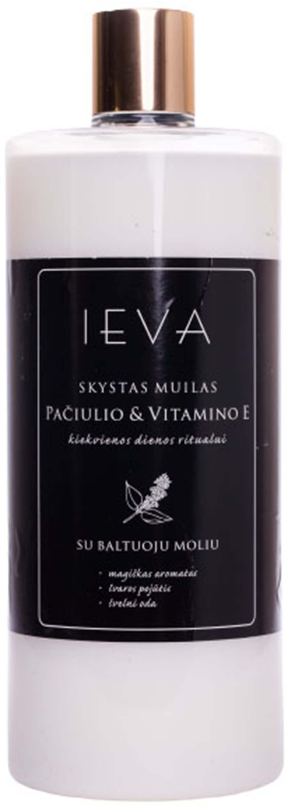Maigas šķidrās ziepes IEVA, pačūlijas aromāts (1000 ml). Ar balto mālu un E vitamīnu. Nodrošina ādas elastību un reģenerāciju. Tilpums: 1000 ml.