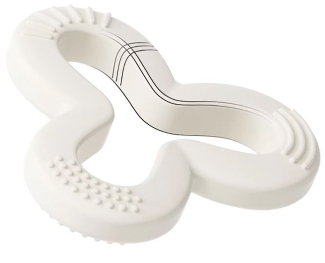 Ērtā HE OR SHE Shamrock graužamā rieva forma un dažādās tekstūras ir paredzētas, lai masētu mazuļa smaganas dažādos leņķos un pat palīdzētu rūpēties par mēles virsmu. Graužamā rieva malām ir dažādu tekstūru rievas, kas paredzētas dažādu košļāšanas mērķu apmierināšanai dažādos zobu nākšanas periodos. Jūsu mazulim tiks garantēta efektīva niezes un nepatīkamo zobu nākšanas sajūtu mazināšana, un viņš ilgi nezaudēs interesi par šo trīs lapiņu graužamo rieviņu! Vieglais un jautrais Shamrock graužamais ir ideāli piemērots mazuļa mazajām rociņām. Jūsu mazulis to ērti turēs un ilgi košļās, nezaudējot interesi. Unikālais dobais dizains uzlabo roku-acu koordināciju. Silikona graužamo ir viegli kopt un tīrīt. Produkts nesatur BPA, PVC, ftalātus, kadmiju, svinu un citus smagos metālus. Izgatavots no 100% pārtikas kvalitātes silikona, drošs mazuļiem. Shamrock graužamo var mazgāt verdošā ūdenī, dezinficēt vai sterilizēt ar tvaiku. To var atdzesēt ledusskapī vai saldētavā, lai vēl vairāk mazinātu diskomfortu zobu nākšanas periodā. Lietošana: pirms pirmās lietošanas reizes nomazgāt un sterilizēt (ne ilgāk kā 5 minūtes verdošā ūdenī). Pirms un pēc katras lietošanas reizes nomazgāt ar siltu ūdeni un mazgāšanas līdzekli. Mazgāšanai neizmantot instrumentus ar raupjām virsmām. Ievietot trauku mazgājamajā mašīnā tikai augšējā nodalījumā. Ieteicams bērniem no 3 mēnešu vecuma. Lietot pieaugušo uzraudzībā.