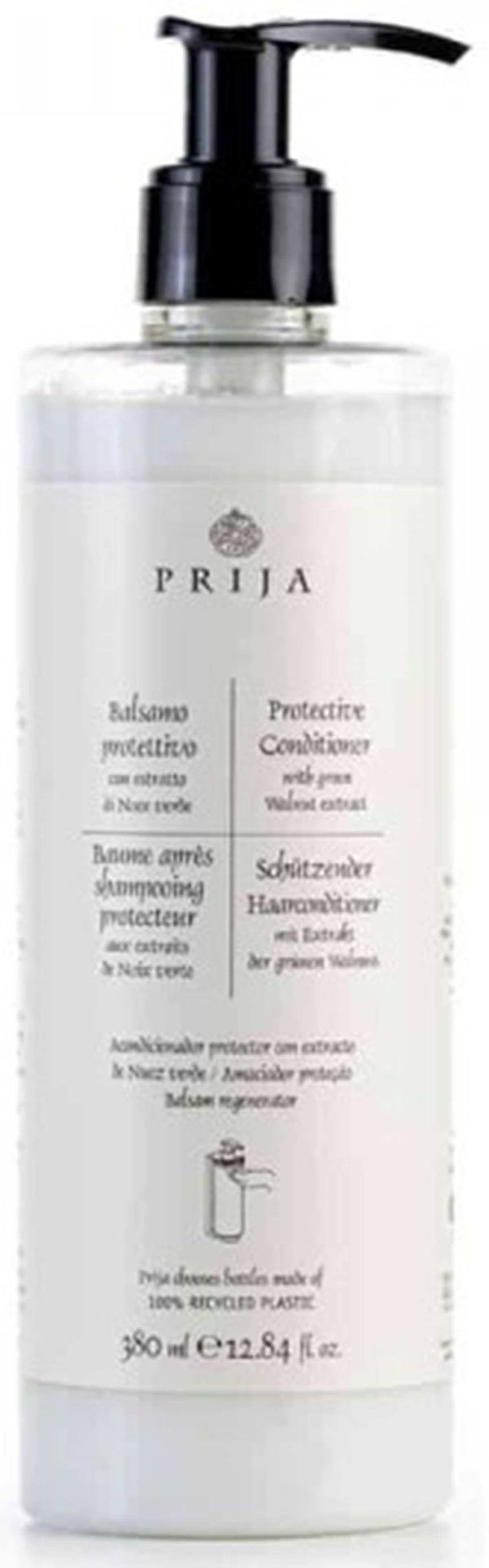 Stiprinošs matu kondicionieris PRIJA ar zaļo riekstu ekstraktu. Bagāts ar polifenoliem, kas kopj matus un piešķir tiem spīdumu. Aizsargā pret apkārtējās vides negatīvo ietekmi. Hipofalerģisks. 100% pārstrādājams iepakojums. Tilpums: 380 ml.