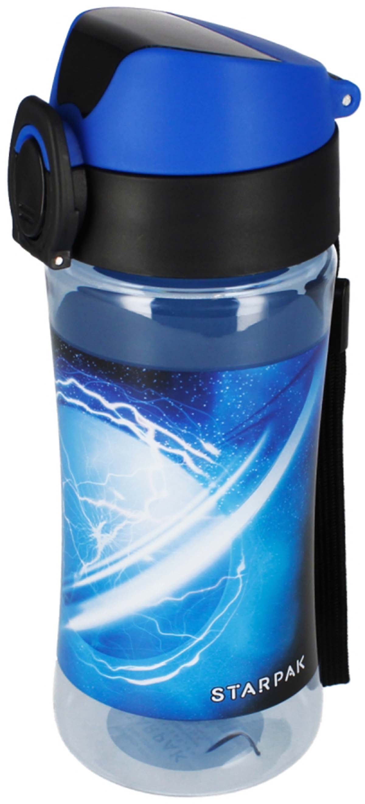 Dzeramā pudele STARPAK NASA, 420 ml. Viegli atverama un aizverama, ar piekariņu ērtākai pārnēsāšanai. Tilpums: 420 ml. Pudele izgatavota no tritāna, kas nemaina garšu, nesatur BPA un bisfenolu. Izmēri: 18x7x7 cm. Paredzēta bērniem no 3 gadu vecuma.