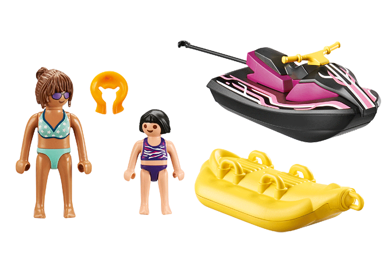 PLAYMOBIL Starter Pack: Brauciens ar banānu laivu. Tu taču gribētu jautri papeldēt atklātā jūrā! Meitene sēžas banānu laivā, bet mamma ar ūdens motociklu viņu velk pāri viļņiem. Meitene valkā glābšanas vesti gadījumam, ja pēkšņi nonāktu ūdenī. Starter Pack ir lielisks ievads PLAYMOBIL spēļu pasaulē! Ieteicams bērniem no 4 gadu vecuma. Brīdinājums! Nav piemērots bērniem līdz trīs gadu vecumam. Sīkas detaļas, aizrīšanās risks. Lietot pieaugušo uzraudzībā. Komplektā ietilpst sievietes un meitenes figūriņas, ūdens motocikls, banānu laiva, glābšanas veste. Komplektā 10 daļas.