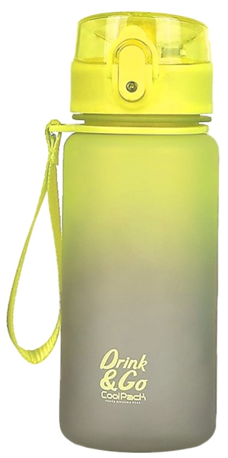 Dzeramā pudele COOLPACK Drink&Go Brisk Mini Gradient, 400 ml. Pudelei ir ērts aizslēgs, to var atvērt, nospiežot pogu priekšpusē. Produkts izgatavots no drošiem materiāliem, kas var saskarties ar šķidrumu. Krāsa tiek izvēlēta nejauši. Tilpums: 400 ml. Izmēri: 8x8x19 cm.