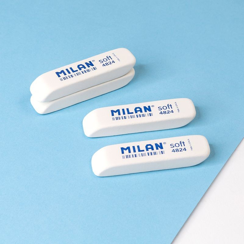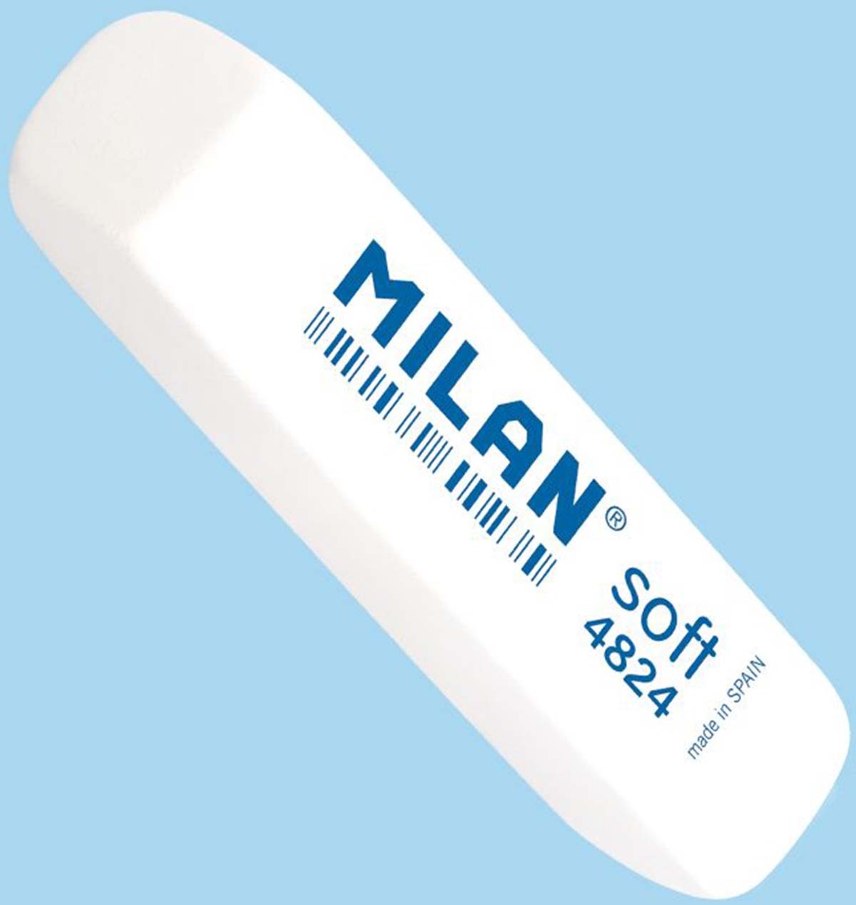 Dzēšgumija MILAN soft 4824. Mīksta, sintētiskā kaučuka dzēšgumija piemērota visām virsmām. Paredzēta dzēšanai. Nebojā papīru.