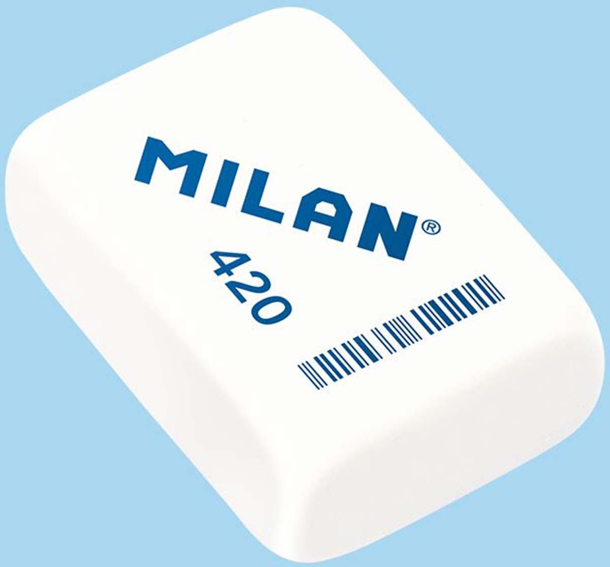 Dzēšgumija MILAN 420. Mīksta, sintētiskā kaučuka dzēšgumija piemērota visām virsmām. Paredzēta dzēšanai. Nebojā papīru.