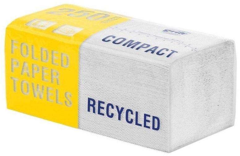 Papīra dvieļi loksnēs GRITE Economy Compact 250 V. Materiāls: otrreizēji pārstrādāta šķiedra. Krāsa: pelēka. Slāņi: 1. Locīšanas veids: V forma. Lokšņu skaits: 250 gab. Salocītas loksnes izmēri: 22,5x11 cm. Atvērtas loksnes izmēri: 22,5x22 cm. Iepakojums: 1 gab. Gramatūra 37 g/m.