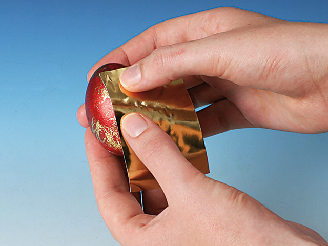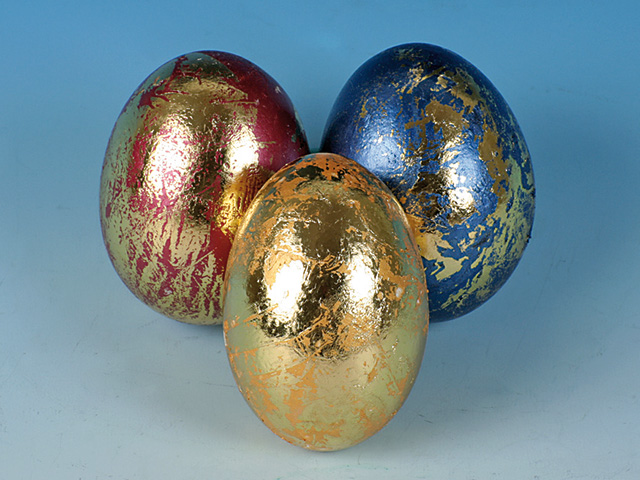 Ar šīm HEITMANN krāsām Zelta mirdzums pagatavosiet svinīgas Lieldienu olas, kas izskatīsies kā juvelierizstrādājumu šedevri. Olas tiek krāsotas ar rokām, uzvelkot cimdus. Pasakainu zelta mirdzumu iegūsiet, ieberzējot ar speciālu zelta foliju. Piemērots balto un brūno olu krāsošanai. Olas krāsot var ne tikai Lieldienām, bet arī citiem svinīgiem gadījumiem. Kā lietot? Izvāriet olas un turiet tās siltas. Iemērciet atdalītos krāsu iepakojumus karstā ūdenī ar galiņiem uz augšu. Kad krāsa kļūs šķidra, nogrieziet iepakojuma galu. Nosusiniet olu. Piliniet aptuveni 15 pilienus krāsas uz cimdā tērptas plaukstas, sāciet ar gaišākajām, vienmērīgi sadaliet. Uzklājiet krāsu ar plaukstu uz olas. Ļaujiet krāsai nožūt, kamēr tā vairs nelīp. Tad nekavējoties berzējiet olu ar folijas matēto pusi; lai labāk redzētu, paberzējiet ar nagu vai karotes kātu. Pirms ņemat citu krāsu, tīri noslaukiet cimdus. Komplektā ietilpst sarkana, zelta un zila pārtikas krāsa (pa 5 ml), zelta folija, cimdi.
