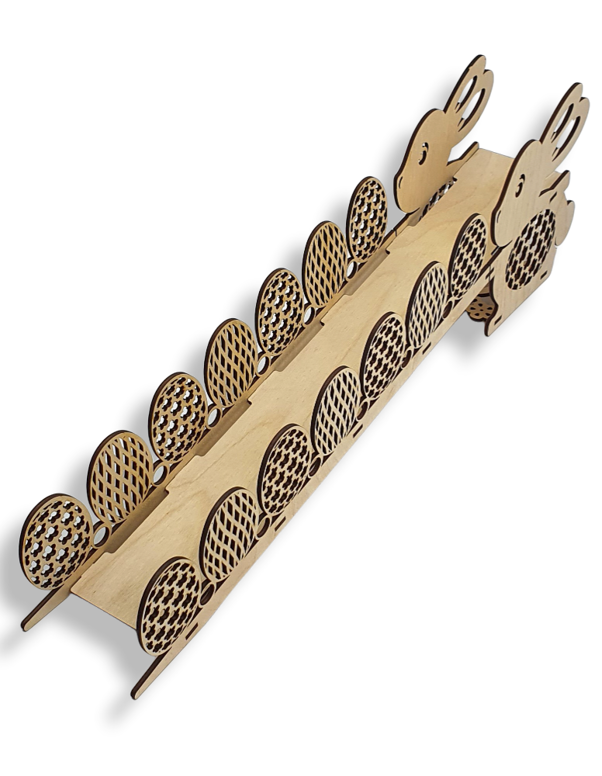 Tuvojoties Lieldienām, kopā ar bērniem atcerieties jautrās tradicionālās Lieldienu spēles. Sakrāsojuši daudzkrāsainas olas, dodieties ar bērniem pagalmos tās ripināt. Atrodiet līdzenu vietu, uzstādiet tekni un vienu pēc otras ripiniet olas. Uzvarēs tas, kuram izdosies nosist visvairāk olu. Tā ir lieliska dāvanas ideja Lieldienās! Jautru ripināšanu! Izgatavots no 3mm saplākšņa. Teknes izmērs 15x50x7,5 cm.
