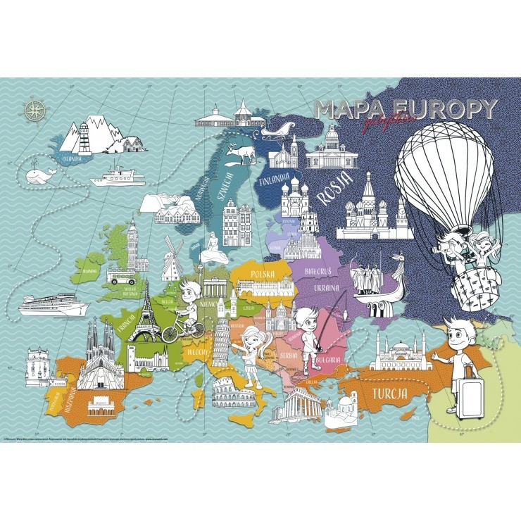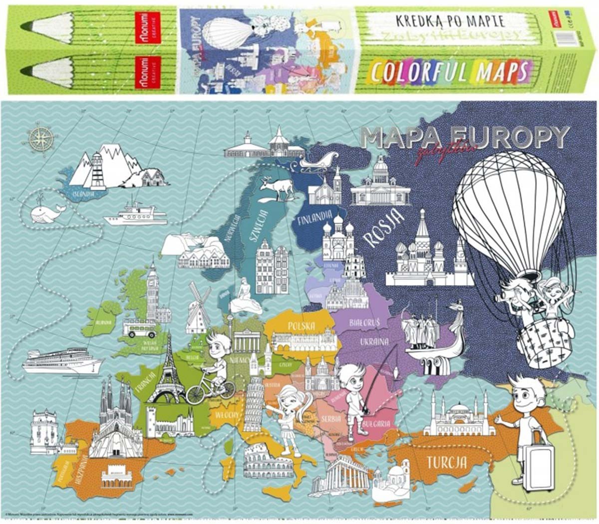 Iepazīsti slavenākos Eiropas pieminekļus! Izpēti tos, pat neizejot no savas istabas! Šajā milzīgajā kartē ne tikai atradīsi interesantākos Eiropas pieminekļus, bet arī varēsi tos izkrāsot, un, to darot, vēl labāk tos iegaumēsi. Karte ir izgatavota no īpaši bieza, kvalitatīva papīra, ir ilgmūžīga, lieliski piemērota istabas dekorēšanai. Lietot pieaugušo uzraudzībā. Iepakojums var atšķirties no fotoattēlā redzamā. Plakāta izmērs 84x59 cm.