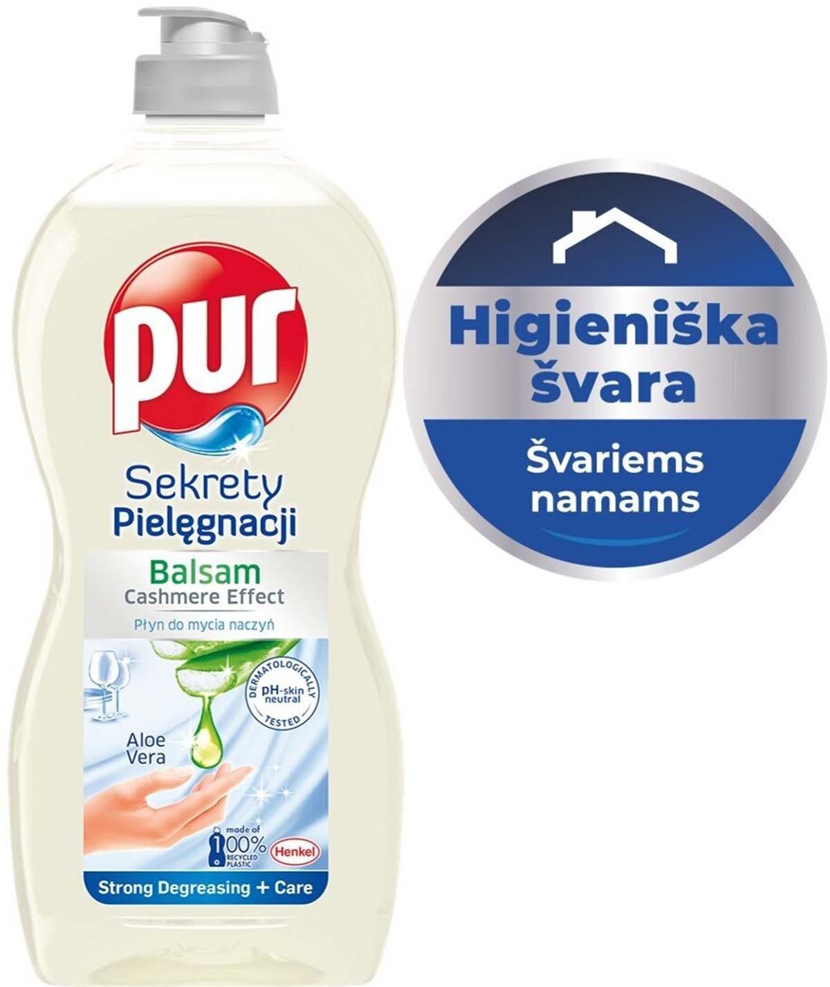 Kopā ar „Pur Secrets of Care“ un pH ādas neitrālu formulu atklājiet nevainojamu kašmira efekta maigumu. „Pur“ trauku mazgāšanas līdzeklis, kas paredzēts mazgāšanai ar rokām, ir dermatoloģiski pārbaudīts. Ātri likvidē taukus, bet rūpējas par Jūsu rokām. 5 - 15% anjonu virsmaktīvās vielas.