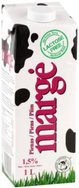 UAT piens MARGĖ - tiek ražots no atlasīta, augstākās kvalitātes svaigpiena. Unikāla tehnoloģija iznīcina pienā esošās baktērijas, bet saglabā visas derīgās svaiga piena vielas - kalciju, vitamīnus un olbaltumvielas. Tas ir augstas kvalitātes piens katrai dienai. Tauku saturs: 1.5%. 1 litra iepakojums, bez laktozes.
