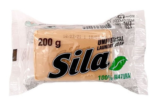 Universālas saimniecības ziepes SILA. Izgatavotas no dabīgām izejvielām. Efektīvas dažādu audumu mazgāšanai. Svars 200 g, 72%.