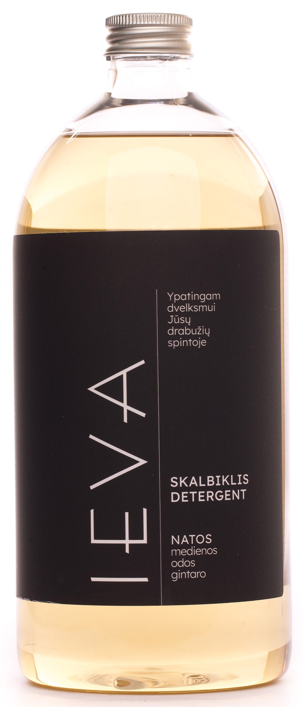 Ekskluzīva dizaina, augstākās kvalitātes mazgāšanas līdzeklis IEVA. Sastāvdaļas ir efektīvas un pilnīgi drošas, nesatur krāsvielas un naftas ķīmijas produktus. Neizraisa alerģiju, nekairina ādu. Likvidē traipus, palīdz saglabāt krāsas. Dominējošās dzintara, koksnes un ādas notes rada greznu aromātu. Bez fosfātiem.
