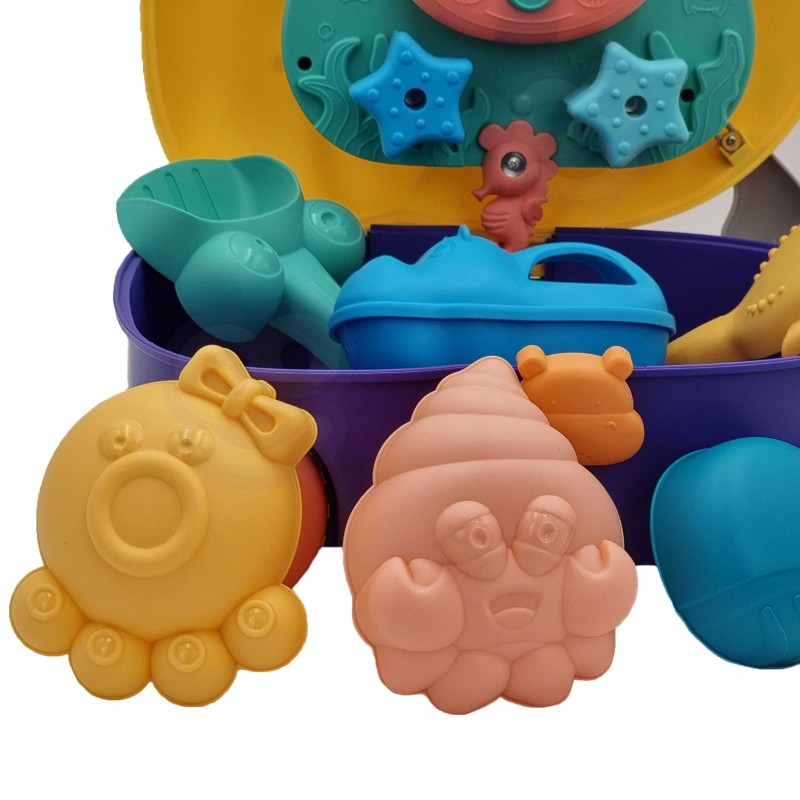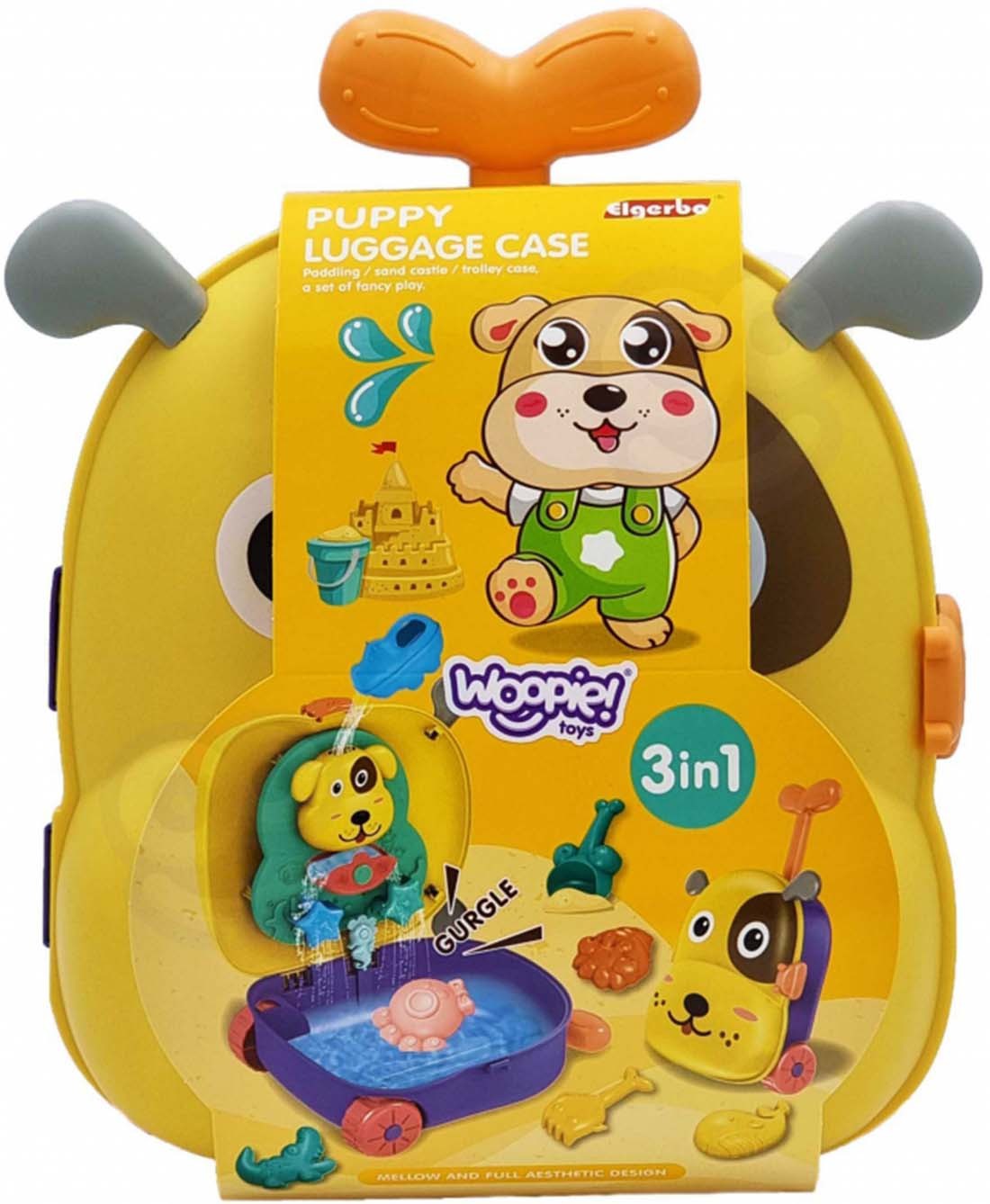 Paņem WOOPIE koferi, pilnu prieka un pārsteigumu, un dodies rotaļāties uz pagalmu vai pludmali. Koferī ir viss nepieciešamais jautrai laika pavadīšanai! To ir ērti paņemt līdzi, jūtoties kā īstam ceļotājam. Atver koferi, piepildi to ar ūdeni un lej ūdeni uz rotaļu ierīces. Vēro, kas notiek! Tās ir trīs rotaļlietas vienā: koferis, ūdens rotaļlietas un smilšu rotaļlietas. Spēle attīsta bērna maņas un māca koncentrēt uzmanību. Piemērots bērniem no 3 gadu vecuma. Brīdinājums! Nav piemērots bērniem līdz trīs gadu vecumam. Sīkas detaļas, aizrīšanās risks. Lietot pieaugušo uzraudzībā. Komplektā ietilpst koferis ar ūdens dzirnavām, lāpstiņa, grābeklis, 4 formiņas, trauciņš ūdenim. Iepakojuma izmēri: 26 x 13 x 32 cm.