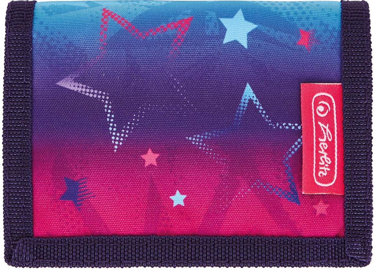 Bērnu maciņš HERLITZ Pink Stars. Maciņā ietilps banknotes, monētas, ir āķis atslēgu piekāršanai. Izgatavots no poliestera. Izmēri: 11,5x8x2 cm.