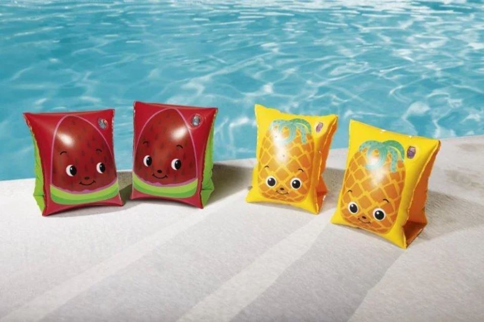 Iemācies peldēt jautrā veidā! BESTWAY Fruitastic piepūšamās peldēšanas piedurknes tev ļoti noderēs. Gaisa kameras tajās nodrošina papildu drošību, un ērtie drošības vārsti ļaus viegli piepūst piedurknes un palīdzēs novērst gaisa noplūdi. Izgatavotas no izturīga vinila. Piemērotas gan zēniem, gan meitenēm. Ieteicams bērniem no 3 gadu vecuma. Brīdinājums! Lietojiet tikai bērnam atbilstošā dziļumā un pieaugušo uzraudzībā. Neatstājiet bērnu ūdenī bez uzraudzības. Krāsa un raksts tiek izvēlēti nejauši. Izmērs 23x15 cm.