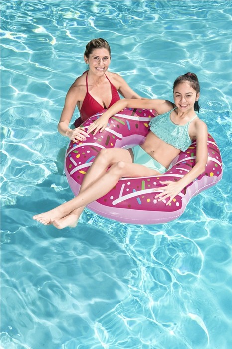 Dodoties jūrā vai ezerā, šis lielais un ērtais BESTWAY Donut peldriņķis ir vienkārši obligāts! Atpūta un peldēšana ar to būs daudz jautrāki! Izgatavots no kvalitatīva vinila. Piepūšams caur vārstu un aizvērts ar korķi. Komplektā iekļauts remonta komplekts. Brīdinājums! Lietojiet tikai bērnam piemērotā dziļumā un pieaugušo uzraudzībā. Neatstājiet bērnu ūdenī bez uzraudzības. Šis nav glābšanas riņķis. Krāsa un raksts tiek izvēlēti nejauši. Riņķa diametrs ir 107 cm.