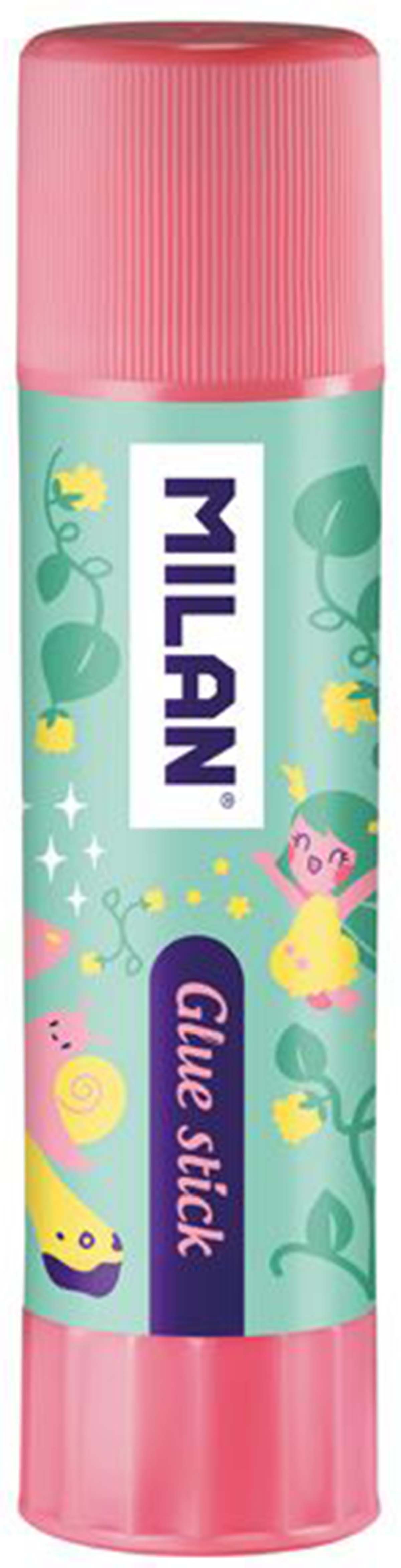 Līmes zīmulis MILAN Fairy Tale, 21 g, violets. Violetā krāsa, kas pēc uzklāšanas izžūstot pazūd. Krāsa palīdz redzēt vietu, kur līme tiek uzklāta. Viegli līmē papīru, kartonu, dažādus audumus u. c. Bez šķīdinātājiem, lieliski piemērots lietošanai skolā.