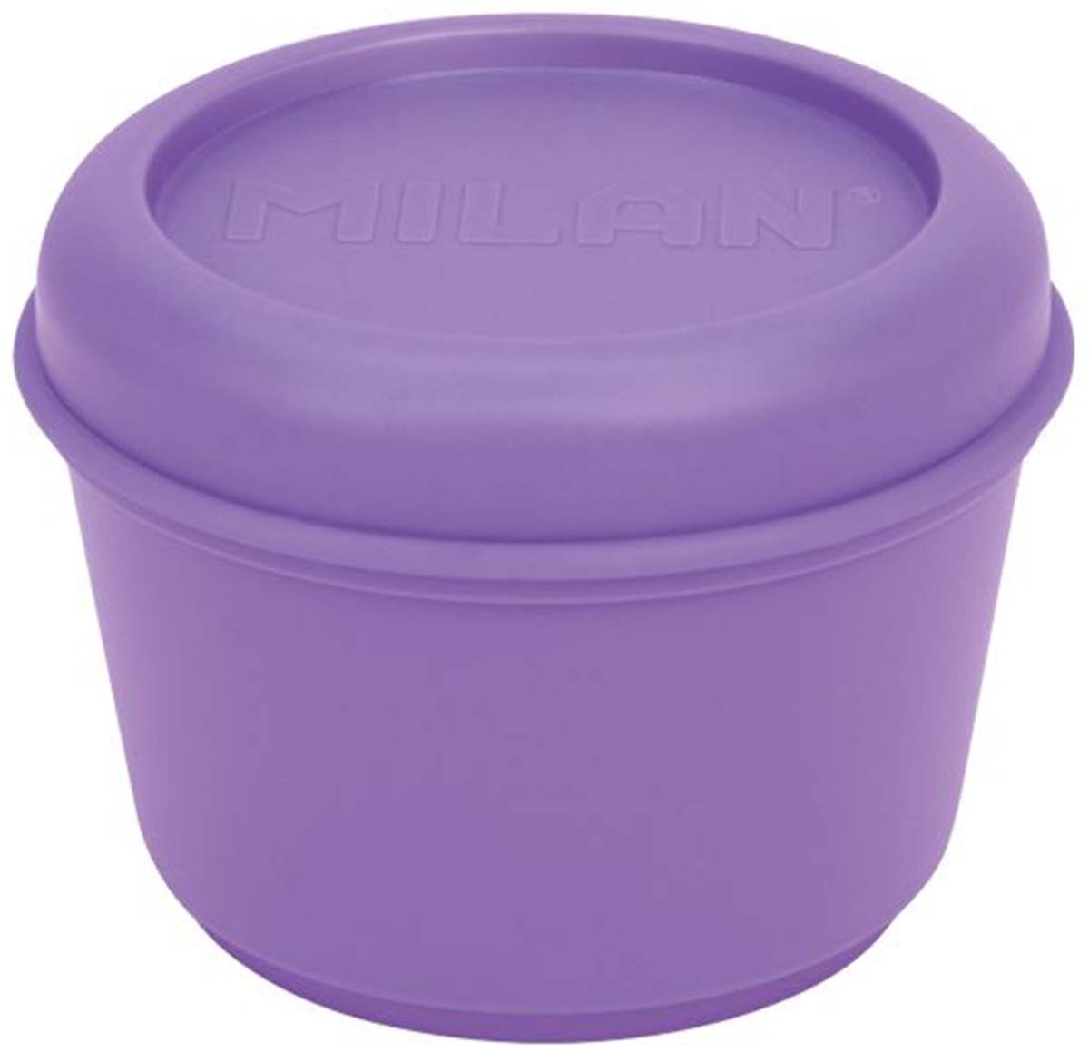 Pusdienu kārba MILAN Sunset, apaļa, violetā krāsā. Hermētiska kārba, gaisa un šķidruma necaurlaidīga. Skrūvējams vāciņš, kas nodrošina blīvumu. Piemērota sildīšanai mikroviļņu krāsnī (maks. 70ºC) ar atvērtu vāku tvaika izplūdei. Piemērota uzglabāšanai saldētavā (līdz -20ºC). Piemērota mazgāšanai trauku mazgājamajā mašīnā (maks. 70ºC). Iekšpuse klāta ar spīdīgu virsmu labākai tīrīšanai. Materiāls: plastmasa bez BPA. Izmēri: 10 Ø x 7 cm. Tilpums: 0,25 litri.