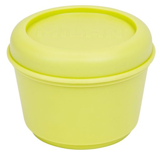 Pusdienu kārba MILAN Sunset, apaļa, dzeltenā krāsā. Hermētiska kārba, gaisa un šķidruma necaurlaidīga. Skrūvējams vāciņš, kas nodrošina blīvumu. Piemērota sildīšanai mikroviļņu krāsnī (maks. 70ºC) ar atvērtu vāku tvaika izplūdei. Piemērota uzglabāšanai saldētavā (līdz -20ºC). Piemērota mazgāšanai trauku mazgājamajā mašīnā (maks. 70ºC). Iekšpuse klāta ar spīdīgu virsmu labākai tīrīšanai. Materiāls: plastmasa bez BPA. Izmēri: 10 Ø x 7 cm. Tilpums: 0,25 litri.