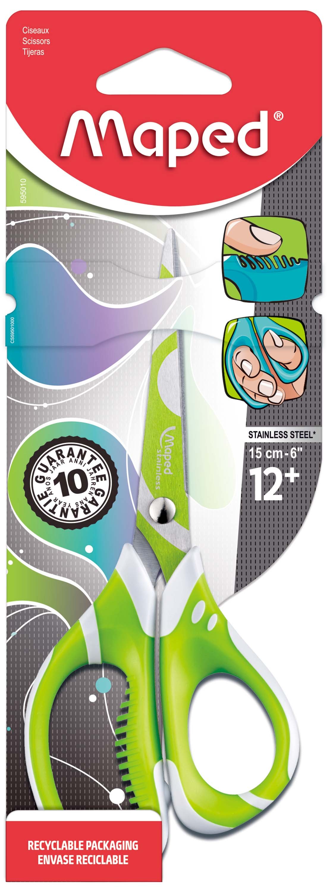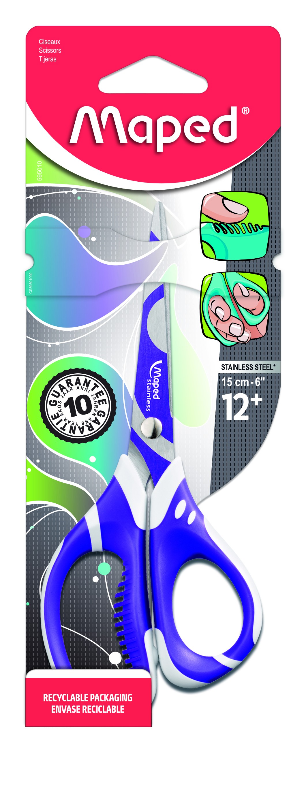 Šķēres MAPED Zenoa Fit, 15 cm. Mīksta materiāla rokturi, ērti turēt. Šķēres nodrošina pilnīgu kontroli griešanas laikā. Izturīgas un ilgmūžīgas. Garums 15 cm. Krāsa tiek izvēlēta nejauši, nav iespējas izvēlēties.