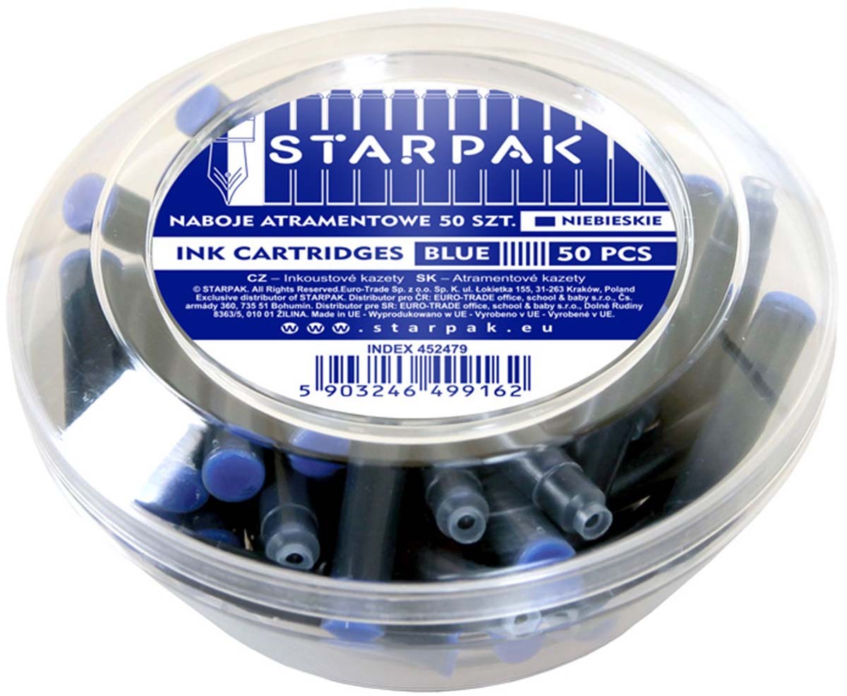 Tintes kapsulas STARPAK, zilas, 50 gab. Īsās zilās kapsulas pildspalvām. Ātri žūst.